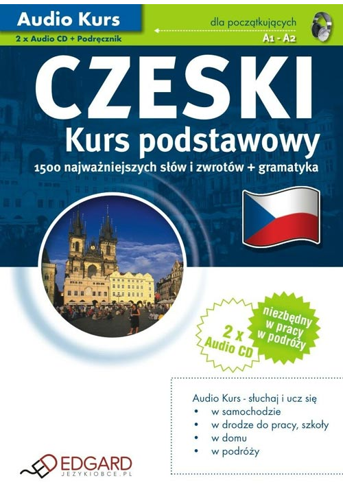 Audio Kurs Czeski Kurs podstawowy przeznaczony jest dla osób początkujących, zaczynających naukę oraz tych, które chciałyby szybko przypomnieć sobie podstawy języka czeskiego i przygotować się do podróży. Kurs polecamy wyjeżdżającym do Czech, zarówno do pracy, jak i w celach turystycznych.Kurs obejmuje 12 lekcji uczących blisko 1500 najbardziej potrzebnych słów i zwrotów, np. pytanie o drogę, zakupy, restauracja, nagłe wypadki, rozmowa o pracę. Drukowany podręcznik (64 strony) zawiera pełne teksty wszystkich nagrań, słowniczek do każdej lekcji oraz najważniejsze informacje gramatyczne.W nagraniach, oprócz nauki słówek metodą powtarzania, znajdują się także dialogi oraz ćwiczenia utrwalające. Łącznie ponad 130 minut nagrań profesjonalnych lektorów.