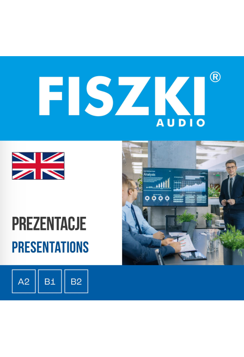 "FISZKI audio – angielski biznes – Prezentacje" polecamy osobom znającym podstawy języka angielskiego (A2+), które w życiu zawodowym stoją przed wyzwaniem przeprowadzenia prezentacji po angielsku i chcą zrobić to profesjonalnie i poprawnie językowo.