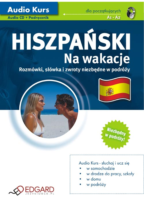 Audio Kurs Hiszpański Na wakacje, to kurs stworzony specjalnie z myślą o osobach wyjeżdżających do Hiszpanii i Ameryki Łacińskiej w celach turystycznych. Przeznaczony jest dla osób początkujących i średnio zaawansowanych. Materiał kursu obejmuje słówka i zwroty niezbędne w trakcie podróży, wypoczynku, zwiedzania czy uprawiania sportu. 16 dialogów prezentuje najbardziej typowe sytuacje: pytanie o drogę, zamawianie dania w restauracji, kupowanie biletu, rezerwowanie noclegu, odprawa bagażowa, czy nawet wizyta u lekarza i na komisariacie policji. Kurs uczy słownictwa o tematyce związanej z wakacjami, a przede wszystkim doskonali rozumienie ze słuchu. Każda lekcja zawiera naukę słówek, wyrażeń i dialogu. W nagraniach wzięli udział wyłącznie native speakerzy - rodowici Hiszpanie.