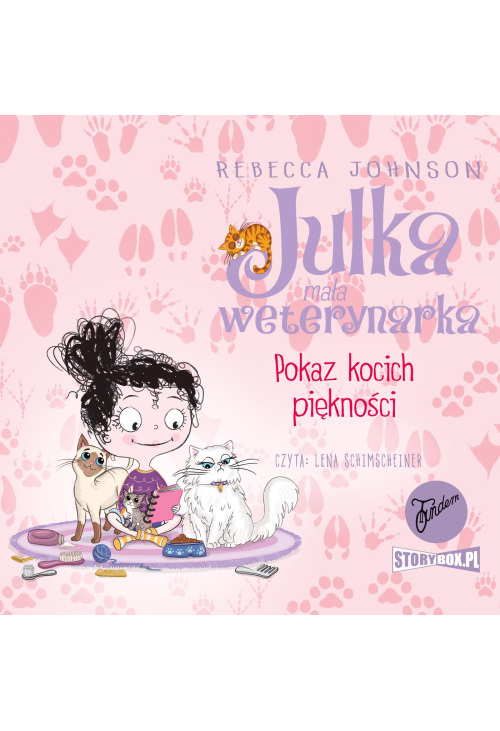 | „Cześć! Jestem Julka. Mam dziesięć lat. I jestem już prawie weterynarką! Moja mama leczy zwierzęta, a ja przyglądam się jej pracy i często w niej pomagam. Obie z moją najlepszą przyjaciółką, Chelsea, kochamy zwierzęta”. W naszym mieście odbywa się pokaz kocich piękności i niektóre z kotów trafiają do gabinetu mamy. Każdy z właścicieli ma własne sposoby przygotowywania swojego pupila na wystawę – niektórzy z nich robią sporo zamieszania. Kiedy nadciąga KOTastrofa, na pomoc rusza moja przyjaciółka, niemal słynna na całym świecie trenerka i fryzjerka zwierząt! Edukacyjna seria o przygodach Julki, która pomagając mamie weterynarce, zdobywa wiedzę o zwyczajach wielu gatunków zwierząt. |