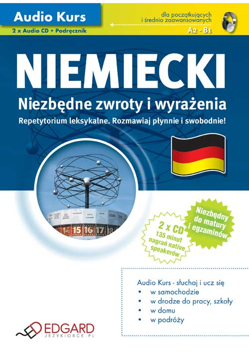 Niezbędne zwroty i wyrażenia polecamy jako repetytorium leksykalne dla wszystkich uczących się języka niemieckiego. Rozmawiaj płynnie i swobodnie! Audio Kurs obejmuje 20 najważniejszych zagadnień, m.in. człowiek, charakter, rodzina, zakwaterowanie, prowadzenie rozmowy. konwersacje przez telefon, czynności codzienne, w pracy, na zakupach. Kurs stanowi szczególną pomoc dla osób przygotowujących się do wyjazdu do Niemiec i Austrii do pracy, w celach turystycznych i na studia.