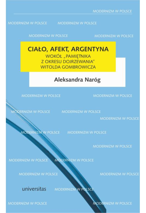 Autorka niniejszej publikacji opisuje rozmaite modele afektywnej poetyki widoczne w prozie Gombrowicza oraz ich ścieżki prowadzące od debiutanckich, młodzieńczych opowiadań aż po pobyt w Argentynie. Jest to lektura pozwalająca jednak „iść w poprzek” deklaratywnym warstwom tekstu. Ciało, afekt i Argentyna – te trzy kategorie będą się dopełniać i przeplatać, tworząc innowacyjny model lektury Pamiętnika z okresu dojrzewania oraz tekstów z nim rezonujących.