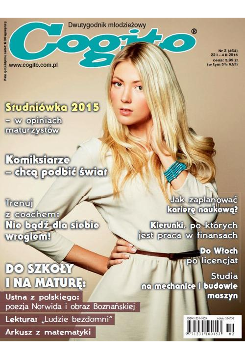 „Cogito” to jedyny młodzieżowy DWUTYGODNIK, który z sukcesem pomaga młodym ludziom w wieku 15–19 lat przygotować się do matury z języka polskiego, matematyki, WOS-u, biologii i geografii. Publikuje arkusze do egzaminów pisemnych, zestawy pytań i odpowiedzi do ustnych.