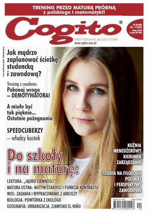 „Cogito” to jedyny młodzieżowy DWUTYGODNIK, który z sukcesem pomaga młodym ludziom w wieku 15–19 lat przygotować się do matury z języka polskiego, matematyki, WOS-u, biologii i geografii. Publikuje arkusze do egzaminów pisemnych, zestawy pytań i odpowiedzi do ustnych.