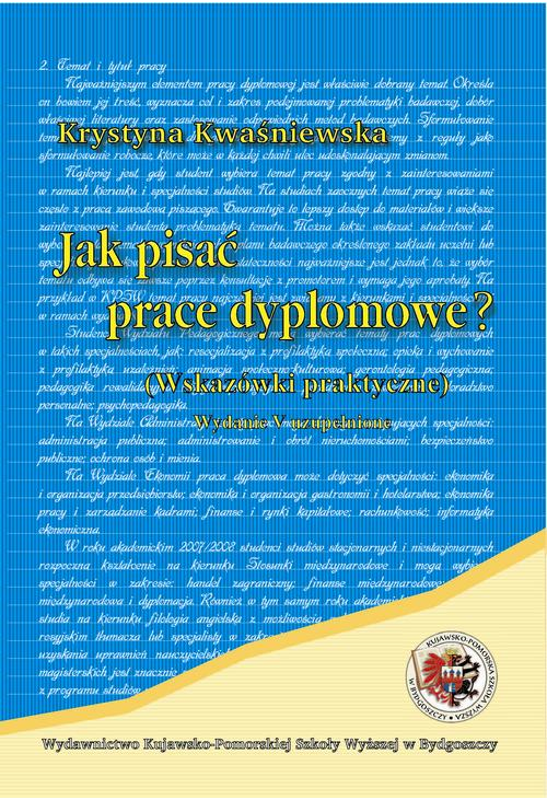 Niniejsze opracowanie pt. „Jak pisać prace dyplomowe? (wskazówki praktyczne)” jest piątym, uzupełnionym wydaniem (pierwsze wydanie ukazało się w 2005, drugie w 2007, trzecie 2010 r., natomiast czwarte w 2015 r.), przeznaczonym dla studentów studiów stacjonarnych oraz niestacjonarnych. Prezentowany tu materiał dotyczy prac zarówno licencjackich, inżynierskich, magisterskich jak i prac kończących studia podyplomowe, gdyż ogólne zasady pisania prac dyplomowych są podobne, z tym jednak, że pracom magisterskim stawia się większe wymagania pod każdym względem. Poradnik zawiera wyjaśnienie istoty, celu i zakresu pracy dyplomowej oraz podaje wskazówki dotyczące zarówno jej ogólnej konstrukcji, jak i konstrukcji poszczególnych członów. Dla lepszego zrozumienia założeń teoretycznych kolejnych etapów pracy przytoczono przykłady z wybranych prac.