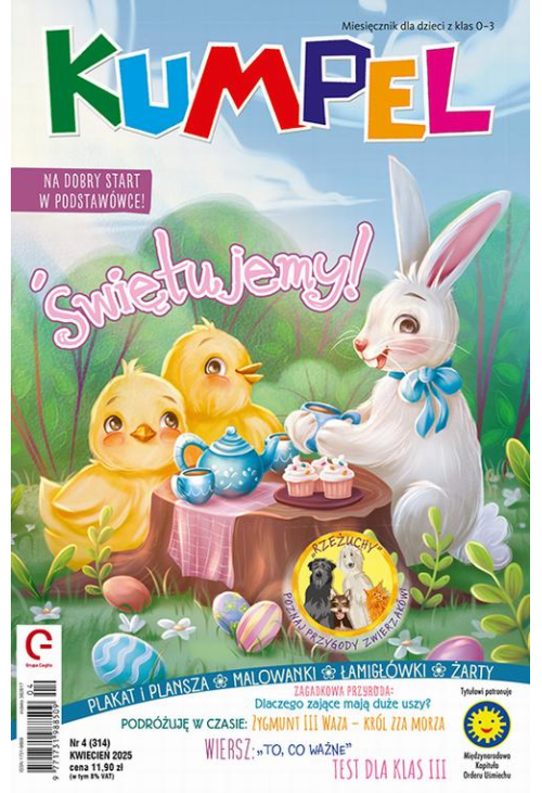 i cieszyć się z bycia razem. „Kumpel” też chce być z Wami w tym magicznym czasie. Dlatego zaprasza na wielkanocne gry i zabawy. Będą powiedzonka związane z jajkami, ciekawostki o zajączkach i barankach. Przeczytamy też wiersz i dowiemy się, co w świętach jest ważne. Będą świąteczne żarty i żarciki oraz malowanki.J