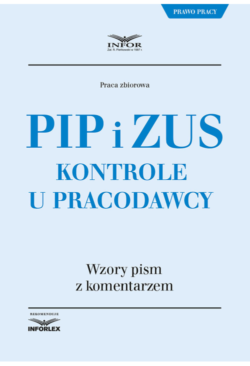 Publikacja jest praktyczną i nieodzowną pomocą dla każdego pracodawcy. Zawiera omówienie praw i obowiązków, jakie mają pracodawcy w razie kontroli Państwowej Inspekcji Pracy i Zakładu Ubezpieczeń Społecznych w zakładzie pracy. Szczególną wartością książki są wzory dokumentów dotyczące korespondencji pracodawcy z PIP i ZUS, jaka jest prowadzona w przypadku kontroli firmy przez te organy. Wzory te zostały opatrzone praktycznym komentarzem.