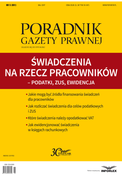 Szczegóły ebooka Świadczenia na rzecz pracowników - podatki, ZUS, ewidencja (PGP 5/2017)