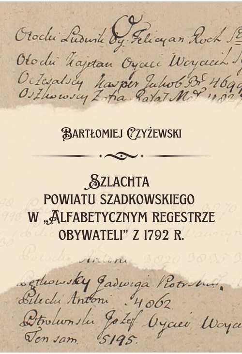 Szlachta powiatu szadkowskiego w Alfabetycznym regestrze obywateli z 1792 r. to pierwsze kompleksowe opracowanie unikatowego źródła, które prezentuje spis obywateli powiatu szadkowskiego tuż przed II rozbiorem Polski. Autor, opierając się na zachowanym rejestrze oraz bogatych materiałach archiwalnych, odtwarza struktury rodzin szlacheckich, ich pochodzenie, majątki, urzędy i powiązania.