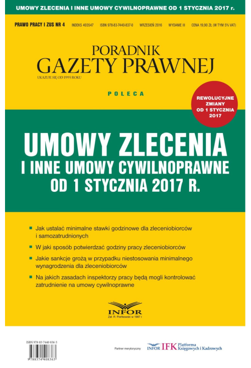 Szczegóły ebooka Umowy zlecenia i inne umowy cywilnoprawne od 1 stycznia 2017 r.