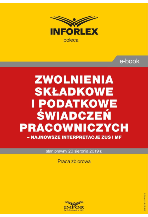 Szczegóły ebooka Zwolnienia składkowe i podatkowe świadczeń pracowniczych - najnowsze interpretacje ZUS i MF